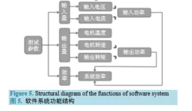 為測量與控制系統編寫軟件系統“電動汽車輪轂電機性能試驗臺”,用于監測電機運行參數,控制 電機負載,生成電機性能曲線和報表輸出,其功能結構如圖 5 所示。3. 輪轂電機試驗